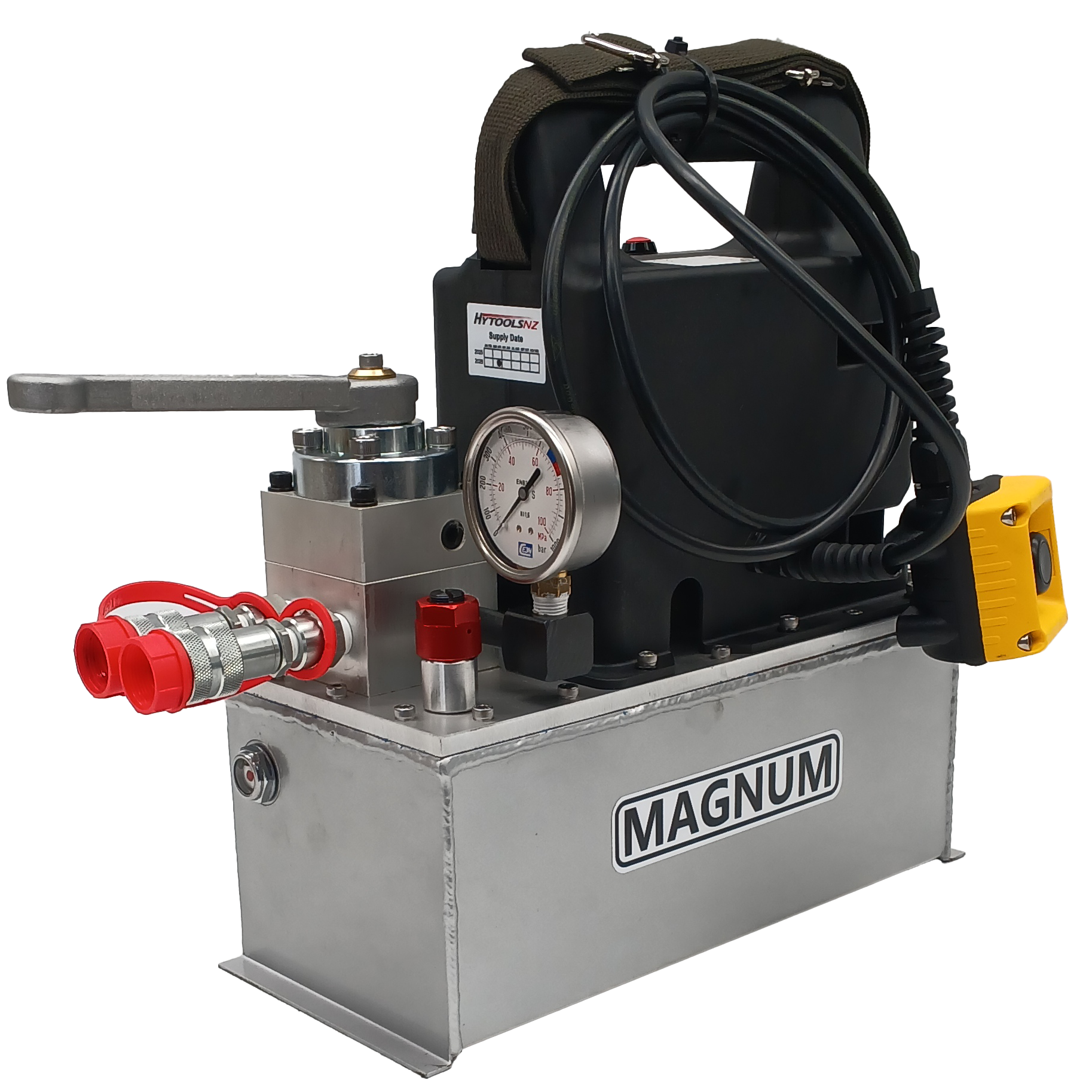 Our new 4 Liter Magnum Battery Hydraulic Pump is the easiest way to power hydraulic equipment and tools. Pushing out 10,000psi in a lightweight compact design, that is fully compatible with all existing 10,000psi rated hydraulic hoses and equipment.